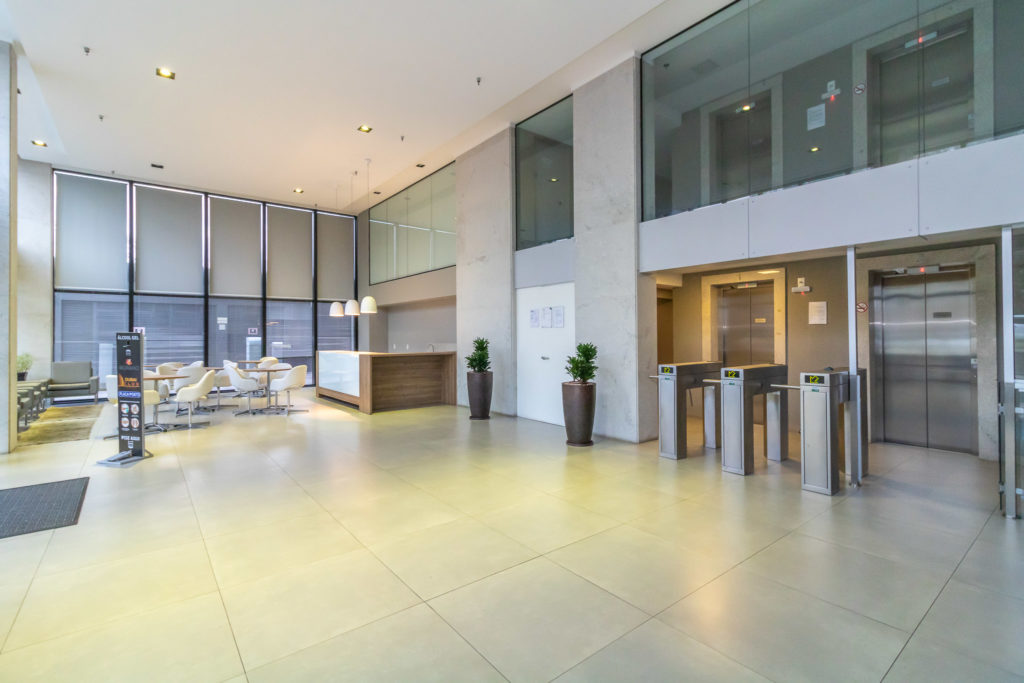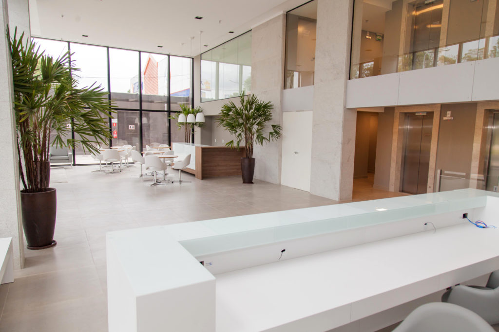 ✔ Hall de entrada de 150m² com pé direito duplo envidraçado;